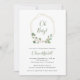 Este convite de brunch de tendências e chás de fraldas na moda apresenta uma coroa de folhas verdes, de cor d'água, eucalipto e uma falso estrutura geométrica de ouro sobre fundo branco. É neutro em termos de gênero tão perfeito para uma rapariga ou para um rapaz. O moderno guião manuscrito diz "oh baby!"