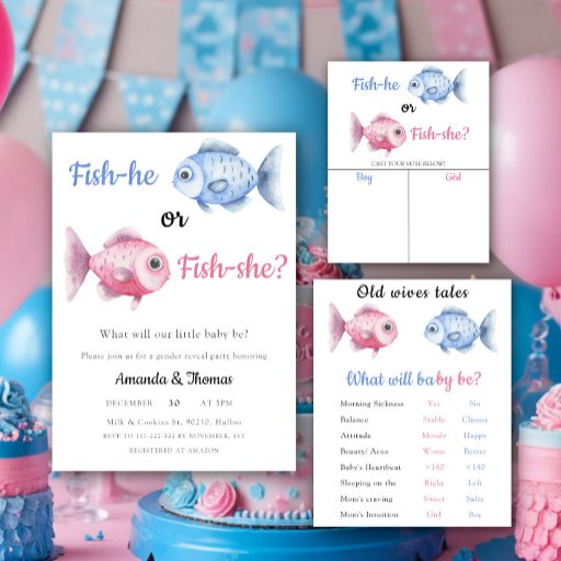 Boy or Girl. Blue or Pink. Watercolor blue fish and pink fish. Fish-he or Fish-she?