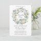 Elegante Watercolor, Convite de festas Floral Wreath Hanukkah. Inclui lindas flores brancas de anêmona, folhagem botânica e pínus cones. Script Silver. Pó Azul.