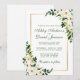 Verde e Branco Botânico Floral com Dourado Convite para Casamento de Quadros - Script Verde