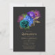 Convite para fotos de mardi gras quinceanera com aquarela floral em acentos de roxo, turquesa e ouro desenhados para serem rápida e facilmente personalizados de acordo com as especificações do seu evento.