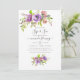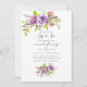 Rosas de púrpura e de pêssego e bichos de pelúcia floral e ver convite com sotaques de coral, ameixa e verde-salva.