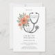 Convite Watercolor Floral Stethoscope Nurse Graduation