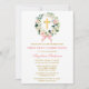 Convite Watercolor Floral Wreath Pink Bow Gold Communion