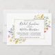 A moderna Watercolor Chá de panela O convite à apresentação de propostas inclui as delicadas flores silvestres do , amarelas, cor-de-rosa, cor de pêssego, azuis poeirentos, roxas, vermelhas e alaranjadas, papoilas, folhas de eucalipto e outras lindas culturas botânicas numa armação de ouro. Script Elegante De Caligrafia.