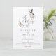 Bonito convite de casamento para o tema do cão, com a nossa ilustração de buldogue francês pintada a aquarela. O adorável Buldogue francês preto e branco tem uma bela rosa rosa pincelada, florais brancos e coroa verde decorando o cachorro. Layout simples, limpo e elegante de design com elegantes arranjos florais complementam muito o design. Personalizado com seus nomes e detalhes de casamento adicionais para um belo convite de casamento perfeito para amantes de cachorros, donos de cachorros, casais com um cachorro ou cachorros. Todas as ilustrações são obras de arte originais de Moodthology Papery.