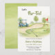 Bring a touch of charm and elegance to your birthday celebration with this soft watercolor invitation design. Featuring a peaceful golf course scene—a blue golf cart, a red-and-white flag, a golf club and ball, and gentle sand tones—it creates a light, whimsical atmosphere.