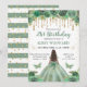 Convite Watercolor Green & Dourado Princess Birday