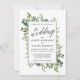 Caligrafia moderna Aquarela O convite para o casamento vegetativo inclui belos verdes botânicos e folhas de eucalipto. Volta.
