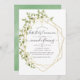 A moda verde e aquosa branca deixa um convite de comunhão sagrado com moldura geométrica dourada e tipografia elegante de escrita manual.