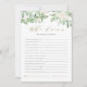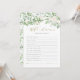 Quem conhece a noiva a ser? Esta placa de fama de chá de panela apresenta ilustrações de aquarela de flores verdes e brancas com um roteiro elegante de ouro. É um jogo de adivinhação divertido, perfeito para chás de panela e chás de casamento primavera. Itens correspondentes estão disponíveis.