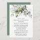 O Cartão de Convite para Chás de panela de Lunco de Cor Biológica Elegante Moderna inclui folhas de eucalipto, folhagem botânica verde, folhas azuis empoeiradas e outros belos lençóis botânicos. Sage Green Back.
