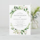 Elegante convite de casamento botânico com seus detalhes de casamento cercados por um quadro oval de folhagem aquosa em tons de primavera e verde-musgo. O convite de casamento do boho verde moderno é perfeito para primavera e casamentos de verão.