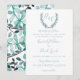 Laurel com aquarelas em tons de azul, cinza e convites para casamentos com monograma verde
