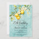Convite de aniversário de 70 com tema limão de cor d'água elegante, com ilustração floral e fundo especial. Personalize o texto com os detalhes da parte.