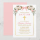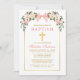 Elegant Watercolor Floral Baptism Invitation includes pink roses, white magnolia flowers and greenery. Gold Cross. Pink Blush Bow Ribbon. Gold Frame.