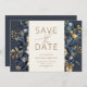 Convite Watercolor Midnight Blue Dourado Floral Salvar Dat