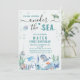 Celebre o seu dia especial com este adorável convite do Primeiro Aniversário do Mar! Este design com o tema oceânico apresenta animais marinhos de cor aquática macia e vida marinha, perfeito para uma cesta de aniversário inspirada no oceano de menino ou menina. Com tipografia divertida e elementos submarinos brancos, ele dá o tom perfeito para uma celebração mágica à beira-mar.