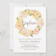 Convide convidados para o seu evento com este convite personalizável para batismo. Apresenta uma coroa de pénia laranja-clara. Personalize este convite botânico adicionando seus detalhes. Este convite para o batismo da coroa floral é perfeito para eventos de primavera e jardim.