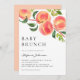 Convide os convidados para o seu evento com este convite personalizável para o bebê brunch. Apresenta pêssegos aquosos. Personalize adicionando seus detalhes. Este convite para bebê de pêssego é perfeito para chás de fraldas de primavera e verão. Os textos são perfeitamente editáveis para todos os efeitos.