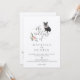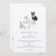 Lindo convite de casamento para o tema do cão, com a nossa ilustração negra do Bulldog Francês, pintada à mão. O adorável Bulldog Francês preto tem uma linda rosa rosa-rosa pincelada, florais brancos e coroa verde decorando o cachorro. Layout simples, limpo e elegante de design com elegantes arranjos florais complementam muito o design. Personalizado com seus nomes e detalhes de casamento adicionais para um belo convite de casamento perfeito para amantes de cachorros, donos de cachorros, casais com um cachorro ou cachorros. Todas as ilustrações são obras de arte originais de Moodthology Papery.