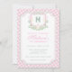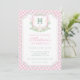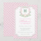 Convite Watercolor Pink 1st Birthday Monogram Crest Party