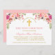 Elegant Watercolor Pink Blush Floral First Holy Communion Invitation includes pink roses and greenery leaves. Gold Cross.