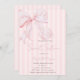 Cute watercolor pink bow on pink striped background. These birthday invitations are easily customized for your event by simply adding your details.