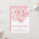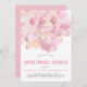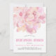 As damas de honra bonito e delicadas lançam um convite ao chá em cor rosa e branca, com uma grande cabeça de flor de pénia de cor aquosa e uma letra de estilo gravada de pincel. O reverso está em cor-de-rosa sólido com uma cobertura de padrão de treliça branca.