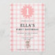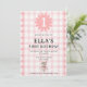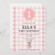 Convite Watercolor Pink Check Bunny Birthday Invitation