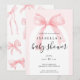 Convite Watercolor Pink Ribbon Bow Baby Shower