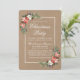 A Elegante Watercolor Poinsettia Convite de festas de Natal Floral inclui belas poinsettias vermelhas com aquarelas, verde botânico, folhagem de inverno, bagas ocas, rosas brancas, pinheiros e bagas azuis. Rustic Kraft Paper.