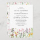 Convites de casamento de flores prensadas em vintage com um fundo branco minimalista, um design de flor silvestre de cor aquática rústica e um modelo de casamento elegante que é fácil de personalizar.