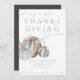 These beautifully elegant white, charcoal and gold Thanksgiving Dinner invitations are designed with hand-painted watercolor fall pumpkins. Customize with the details of your holiday gathering for a special evening to remember