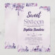 Convite Watercolor Purple Flowers Sweet Sixteen
