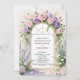 This invitation is special for its romantic, ethereal watercolor illustration of a wedding ceremony arch. The lush arrangement of pink and lavender roses atop classical columns creates a breathtaking, fairytale setting. Its soft, pastel color scheme and elegant architectural elements make it perfect for a sophisticated garden, spring, or destination wedding.