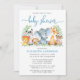 Convite Watercolor Safari Animais Chá de fraldas Azul