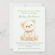 Celebrate the baby shower with this watercolor invitation featuring a sage-green teddy bear.