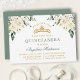 Convite Watercolor White Roses Sage Green Gold Quinceanera