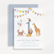 A delightful choice for parents looking for a Wild One first birthday invitation with classic safari animals, soft watercolor artwork, and timeless appeal.