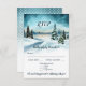 Cartão RSVP com uma pintura aquosa de uma cena de paisagem maravilhosa de inverno com pinheiros cobertos de neve. Pode eliminar as opções do menu se não as necessitar. Este cartão RSVP corresponde a convites de casamento.