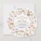 Delightful watercolor woodland baby shower invitation featuring adorable forest animals—bunnies, hedgehogs, squirrels, deer, bears, birds—in a whimsical round circle with mushrooms, berries, florals, leaves, and soft foliage on clean white background. This enchanting gender neutral design brings magical nature vibes to your baby shower! Soft hand-painted style with elegant gold text for easy personalization: honoree's name, date, time, location, RSVP details. Perfect for Boho forest-themed celebrations or cozy woodland nurseries. High-quality printable invite—customize now for a charming event!
