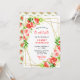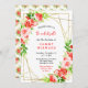 This fun and whimsical birthday party invitation features watercolor watermelon, pomegranate, strawberries, cherries and foliage on a gold geometric frame. The text combines handwritten script and serif fonts for a stylish and modern look. This is perfect for a summer rustic birthday party.