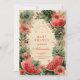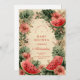 This baby shower design showcases a lush vintage garden illustration with ripe watermelon accents, soft florals, and leafy greenery on a warm parchment background. The composition feels fresh yet nostalgic, blending old-world botanical charm with a playful summer fruit theme.
