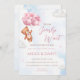 Celebrate your little girl on the way with this We Can Bearly Wait baby shower invitation. A soft, feminine twist on the beloved teddy bear theme. Featuring a sweet brown bear surrounded by pastel pink balloons and stars, this teddy bear invitation adds the perfect touch of warmth and charm to your celebration. Whether you’re planning a cozy afternoon sprinkle or a full baby shower, this customizable digital invite makes sharing your event details effortless.