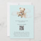 We Can Bearly Wait Teddy Airplane Blue Baby Shower Invitation. Get ready for an adventure in the sky with this adorable teddy bear airplane baby shower invitation! Featuring a charming watercolor illustration of a cuddly teddy bear piloting a vintage airplane through fluffy clouds, this invite sets a playful and sweet tone for your upcoming celebration. The soft blue background and whimsical calligraphy add a touch of elegance, making it perfect for welcoming your little one. Ensure your guests have all the details with plenty of space for event information on the front and back, with additional option for QR code on the back, making it easy for everyone to join the celebration.