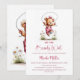 Celebrate the imminent arrival of your bundle of joy by inviting your friends and loved ones to your baby shower with this invitation featuring an adorable teddy bear wearing pink overalls playing jump rope.. The customizable text allows you to effortlessly add your name, date and time of the celebration, and the RSVP information. A variety of paper types and corner styles are available for your unique invitations, along with the option to download if you prefer a digital format.