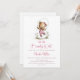 Celebrate the imminent arrival of your bundle of joy by inviting your friends and loved ones to your baby shower with this invitation featuring an adorable teddy bear wearing pink overalls playing jump rope.. The customizable text allows you to effortlessly add your name, date and time of the celebration, and the RSVP information. A variety of paper types and corner styles are available for your unique invitations, along with the option to download if you prefer a digital format.