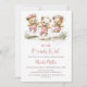 Celebrate the imminent arrival of your bundle of joy by inviting your friends and loved ones to your baby shower with this invitation featuring three adorable teddy bears wearing pink polka dot overalls playing jump rope.. The customizable text allows you to effortlessly add your name, date and time of the celebration, and the RSVP information. A variety of paper types and corner styles are available for your unique invitations, along with the option to download if you prefer a digital format.