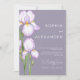 This wedding invitation features a sophisticated, minimalist style. Delicate irises in soft lilac shades are depicted against a pastel background, creating an atmosphere of sophistication and tranquility. The design is modern, airy, and perfect for a stylish, romantic wedding.